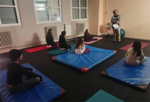 Empezamos con la presentación a nuestro alumnado de 1º ESO de nuestro proyecto de Mindfulness. Nuestro profe, David Giraldo, les enseña los primeros pasos en esta disciplina en nuestra aula de bienestar. Y salimos todos relajados y presentes en el aquí y el ahora.