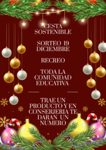 Recordar que podéis participar en la cesta sostenible de navidad del centro trayendo un producto no perecedero a conserjería del centro. Durante el recreo del día 19 se hará el sorteo.