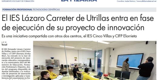El IES Fernando Lázaro Carreter de Utrillas, junto con el IES Cinco Villas y el CIFP Elorrieta-Erreka Mari, ha iniciado la fase de ejecución de su proyecto de innovación educativa dentro de la convocatoria 2023 del Ministerio de Educación, Formación Profesional y Deportes. Esta iniciativa forma parte del programa nacional de ayudas a proyectos de innovación e investigación aplicadas y transferencia del conocimiento en Formación …