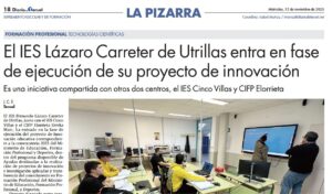 El IES Fernando Lázaro Carreter de Utrillas, junto con el IES Cinco Villas y el CIFP Elorrieta-Erreka Mari, ha iniciado la fase de ejecución de su proyecto de innovación educativa dentro de la convocatoria 2023 del Ministerio de Educación, Formación Profesional y Deportes. Esta iniciativa forma parte del programa nacional de ayudas a proyectos de innovación e investigación aplicadas y transferencia del conocimiento en Formación …